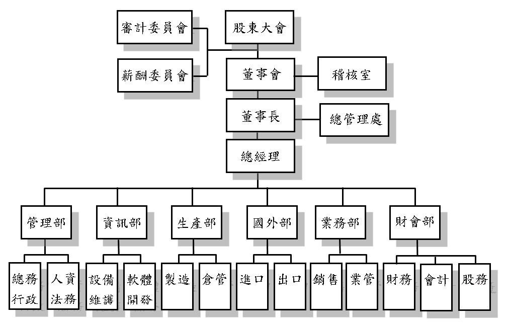 负责财务资金之规划、调度与出纳。 负责会计制度之建立,各项帐务、税务有关之会计处理及规划事宜及成本之计算分析、预算之编制、管理分析等。 股务相关事务委托股务代理公司办理。 |